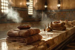Traditional and modern beauty accessories inspired by Moroccan rituals.